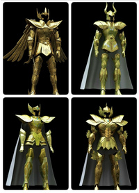 - 天箭座(據說戰士生前為白銀聖鬥士,則聖衣為白銀聖衣,與原作相一致)[2]