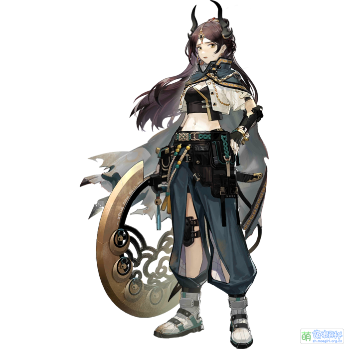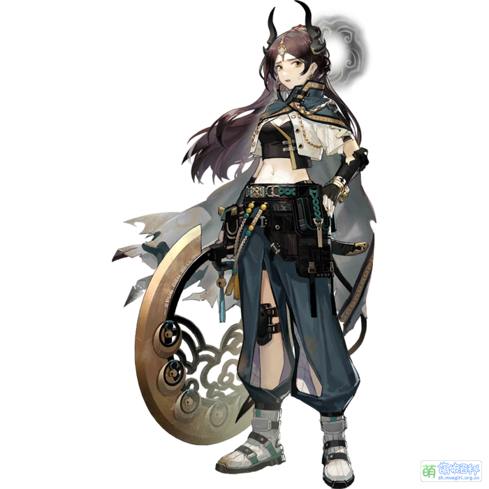 | 萌點 | 中分、光環、偃月輪、雙角、露臍裝、披風、長褲 |