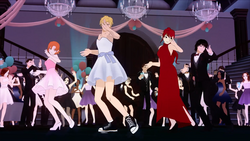 眾人參與舞會,只有Jaune和Ruby躲在角落喝悶酒。當Jaune說到Neptune時,被Ruby告知Weiss是獨自來舞會的。知道是Neptune拒絕了Weiss的Jaune感到不悅,想找Neptune理論時,看見了路過的Pyrrha一個人走上了露台。