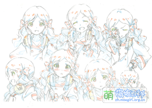 | 萌點 | 下雙馬尾、捲髮、蝴蝶結、元氣、藝術家、第三人稱己稱 |